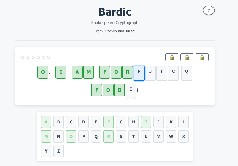 Just in time for the holidays, it’s Bardic – Daily Shakespeare Cryptograms!