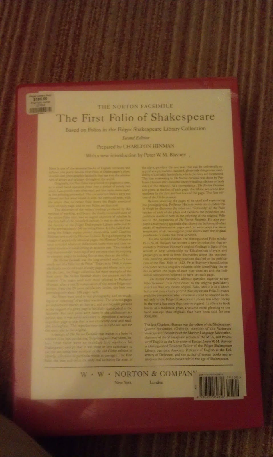 Looking at that Amazon price I see that I just paid more than perhaps I should have, but what can ya do. I will forever be able to say that I got this one from the Folger itself. Should have gotten somebody to sign it. 😉